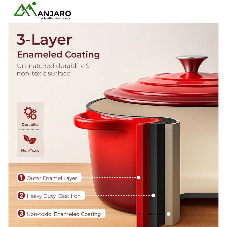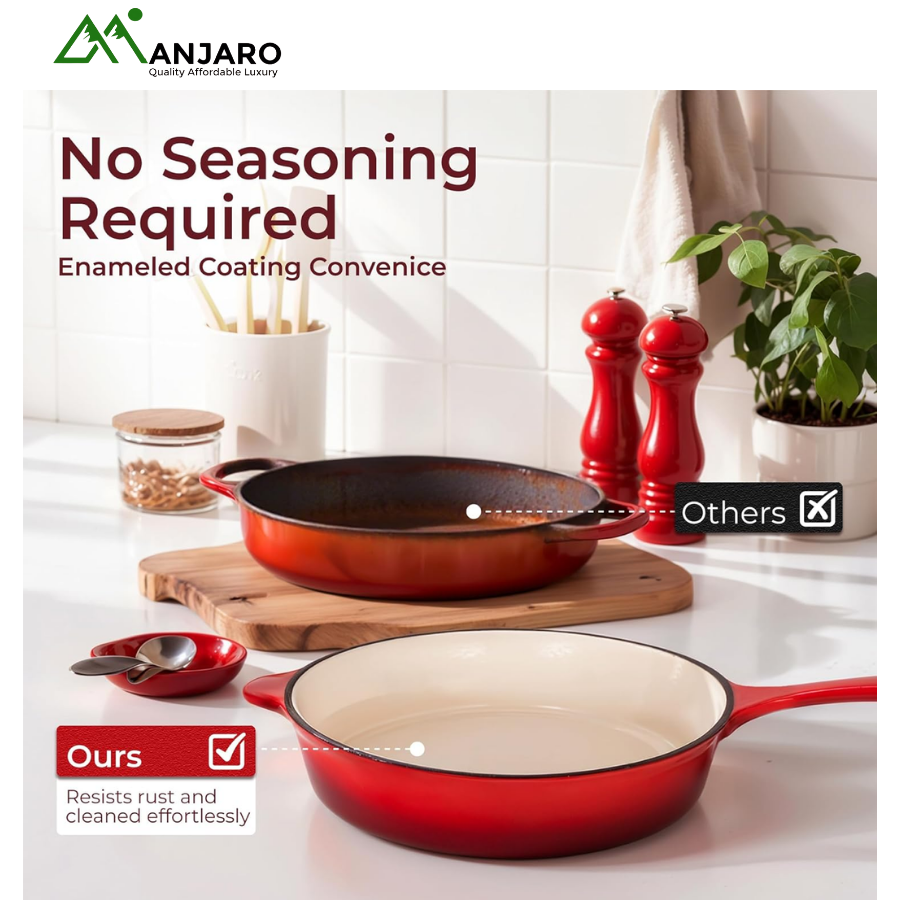 Upgrade your kitchen with a dynamic, fresh, and forward-thinking set of cookware built to last generations: the 4-Piece Red Enamel Cast Iron Cookware Set. This must-have collection combines the legendary heat retention of cast iron with a beautiful, easy-to-clean vibrant red enamel finish.