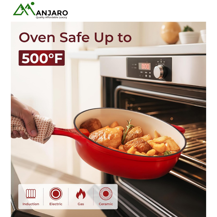 Functionality: Excellent for high-heat searing, deep frying, braising, baking, and slow cooking.