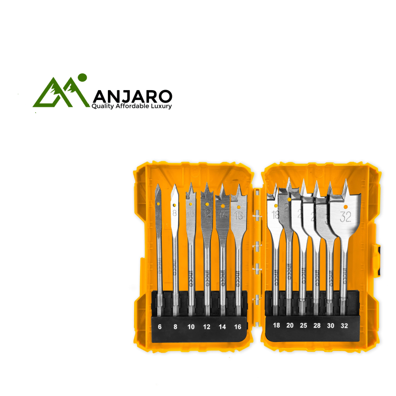The AKDL1206 12 Pcs Flat Wood Drill Bits Set is built for precision, power, and versatility in woodworking.