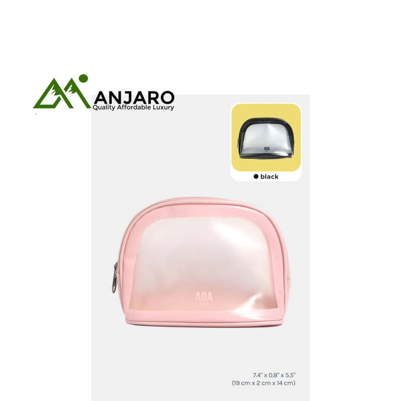 Keep your beauty essentials organized and visible with the AOA Studio Clear Frosted Makeup Bag in pretty pink. Made from lightweight, water-resistant PVC with a semi-transparent frosted front, this pouch instantly lets you find your items while keeping them secure from spills. Flexible yet sturdy, it fits comfortably in your purse or travel luggage. With its sleek design and pastel hue, it's both practical and stylish—ideal for everyday use and on-the-go touch-ups.