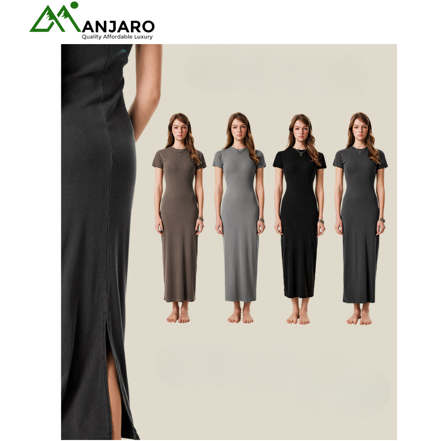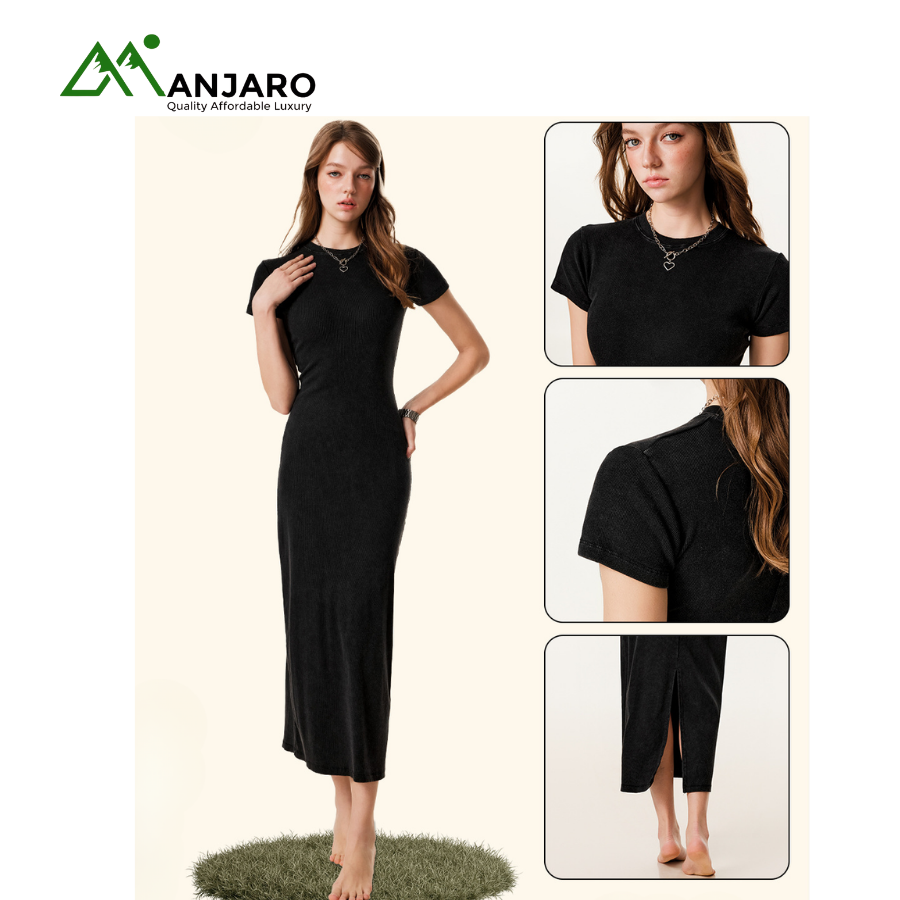 Design: Round neck, short sleeves, and body-hugging silhouette for a flattering look.