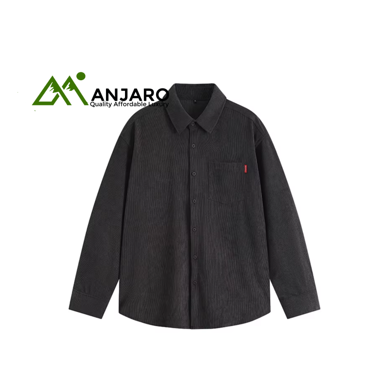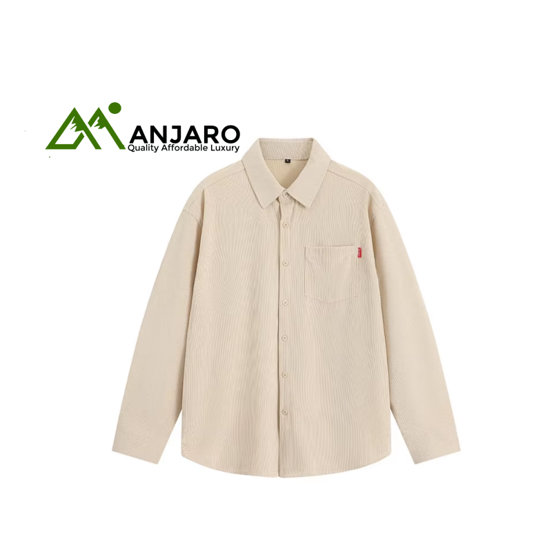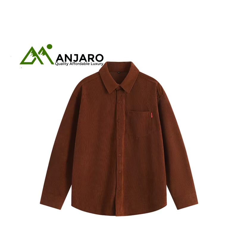 Men’s corduroy-style long-sleeved jacket shirt designed for a trendy casual autumn look.