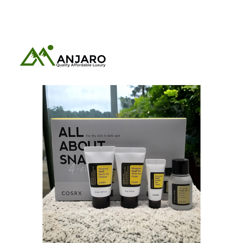 The COSRX All About Snail Kit is a complete skincare set featuring the best-selling snail mucin line from COSRX. This kit includes travel-size essentials that work together to repair, hydrate, and strengthen the skin barrier. Infused with high concentrations of snail mucin, the products help improve skin elasticity, fade acne scars, and promote a healthy, radiant complexion.