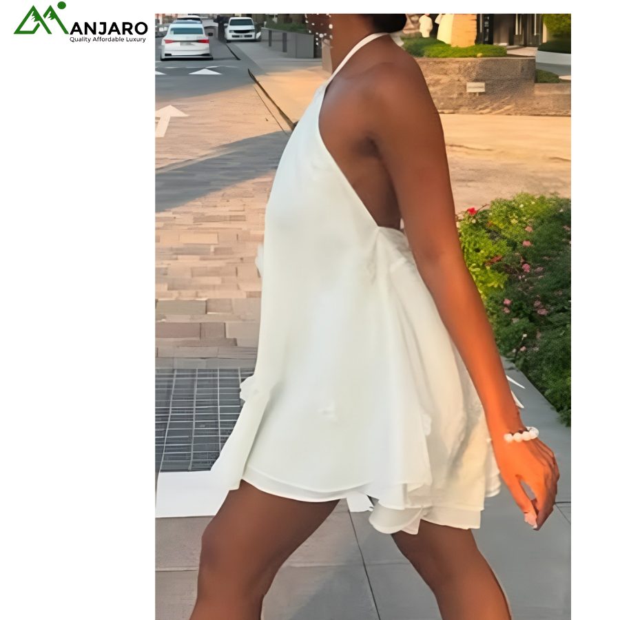 Embrace the charm of effortless femininity with the Foreign Trade 3D Flower Halter Neck Chiffon Mini Dress, a delicate fusion of lightness and allure.