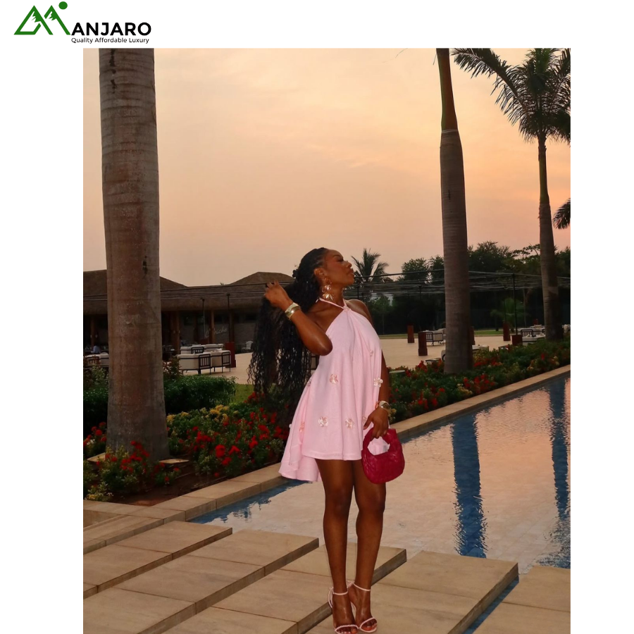 Made from soft, breathable chiffon, this dress features enchanting 3D floral embellishments and a graceful halter neck design that flatters your shoulders and neckline. The A-line silhouette and elastic waistband create a naturally flowing shape that moves beautifully with every step, giving you a youthful, romantic vibe perfect for brunches, dates, and summer getaways.