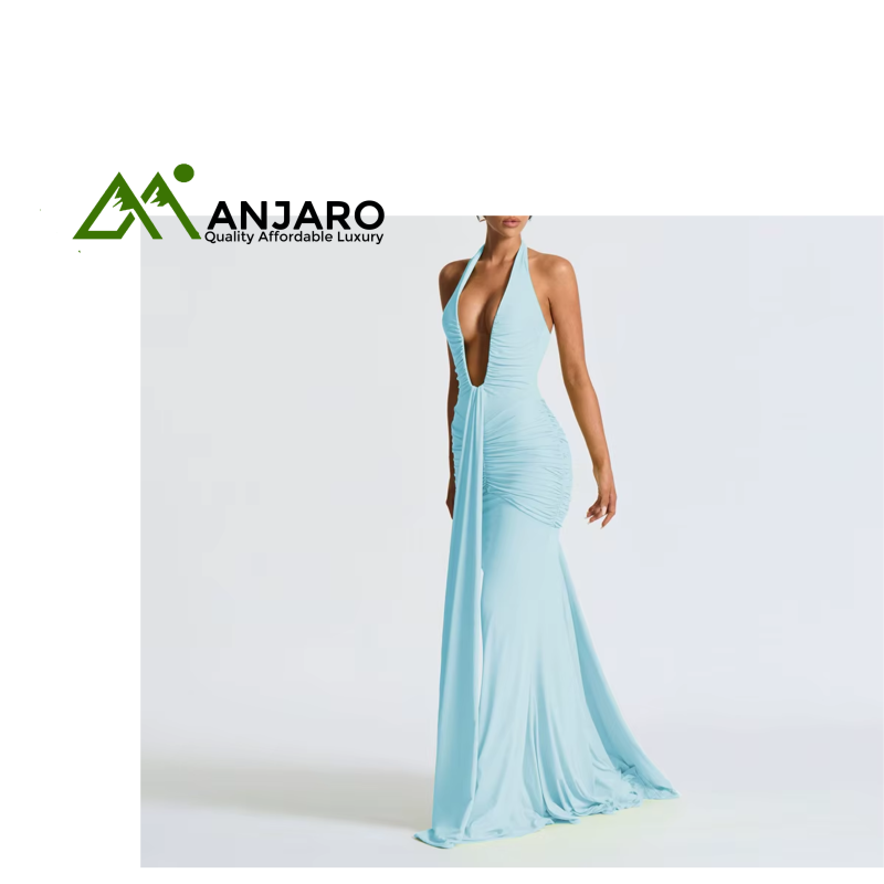 Turn every summer occasion into a showstopper moment with this Sexy Halter Deep V-Neck Backless Maxi Dress. Designed in a slim-fit bodycon silhouette, this dress hugs your curves with elegance while its deep V-neckline and backless design give it a daring edge. Crafted from lightweight spandex/polyester with breathable woven fabric, it’s perfect for beach parties, summer evenings, or casual yet glamorous gatherings. Its empire waistline and wrap hem add a flattering shape, while the halter style keeps it modern and chic.