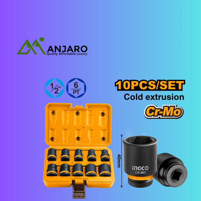 The HKISSD12101 10 Pcs 1/2"DR Impact Socket Set is engineered for professionals who demand durability and precision. Made from high-strength Chrome Molybdenum (Cr-Mo) steel, each socket undergoes cold extrusion and heat treatment to ensure maximum torque resistance and long service life. Designed for use with impact wrenches and power tools, this set delivers superior performance in automotive repair, mechanical assembly, and heavy-duty maintenance work. Each socket features a 1/2" drive size with 10 precision-machined sizes for reliable grip and consistent fit.
