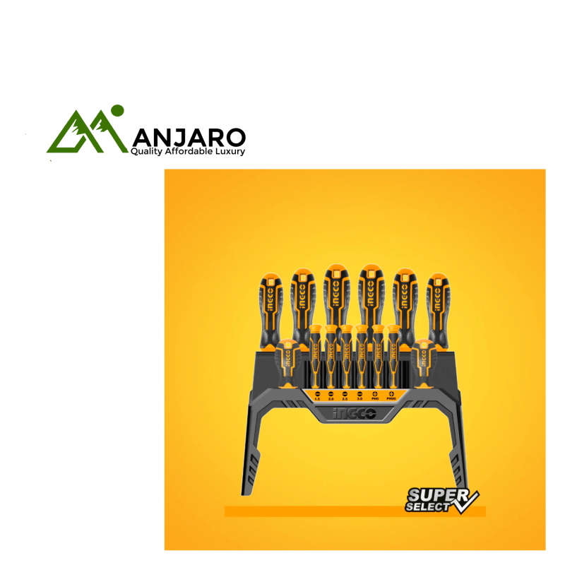 The HKSD1428 14 Pcs Screwdriver and Precision Set is a comprehensive toolkit engineered for accuracy, durability, and comfort. Made from premium CR-V (Chrome Vanadium) steel, this set ensures high torque strength and corrosion resistance for long-lasting performance. It features 8 full-size screwdrivers and 6 precision screwdrivers, each equipped with round blades and magnetic tips for efficient fastening. The new design ergonomic handle provides superior grip and comfort, reducing hand fatigue during extended use. Ideal for professional technicians, electricians, and DIY enthusiasts, this set delivers precision for all repair and assembly tasks.