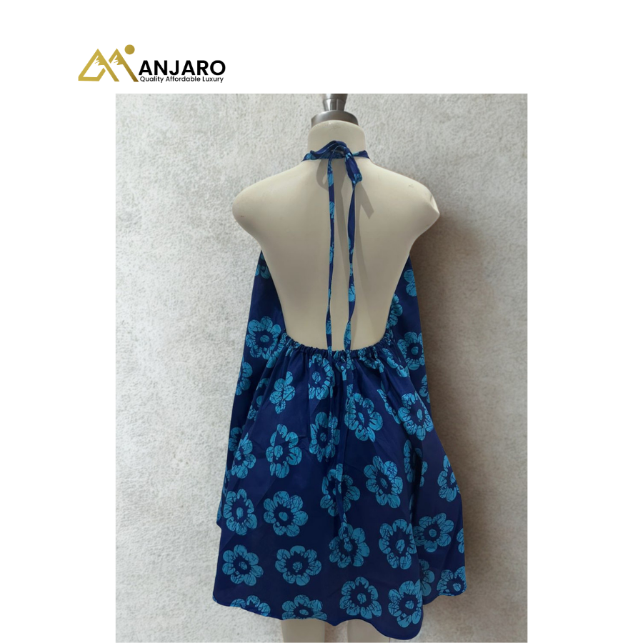 The Indigo Floral Halter Flare by Manjaro is a celebration of playful femininity and artisanal textile design. Crafted from premium, breathable cotton, this mini-length dress features a deep indigo base adorned with hand-stamped cerulean floral motifs. The "Azure Bloom" pattern is a rhythmic, all-over batìk composition that evokes the refreshing spirit of the ocean, creating a visual energy that is both calming and captivating.