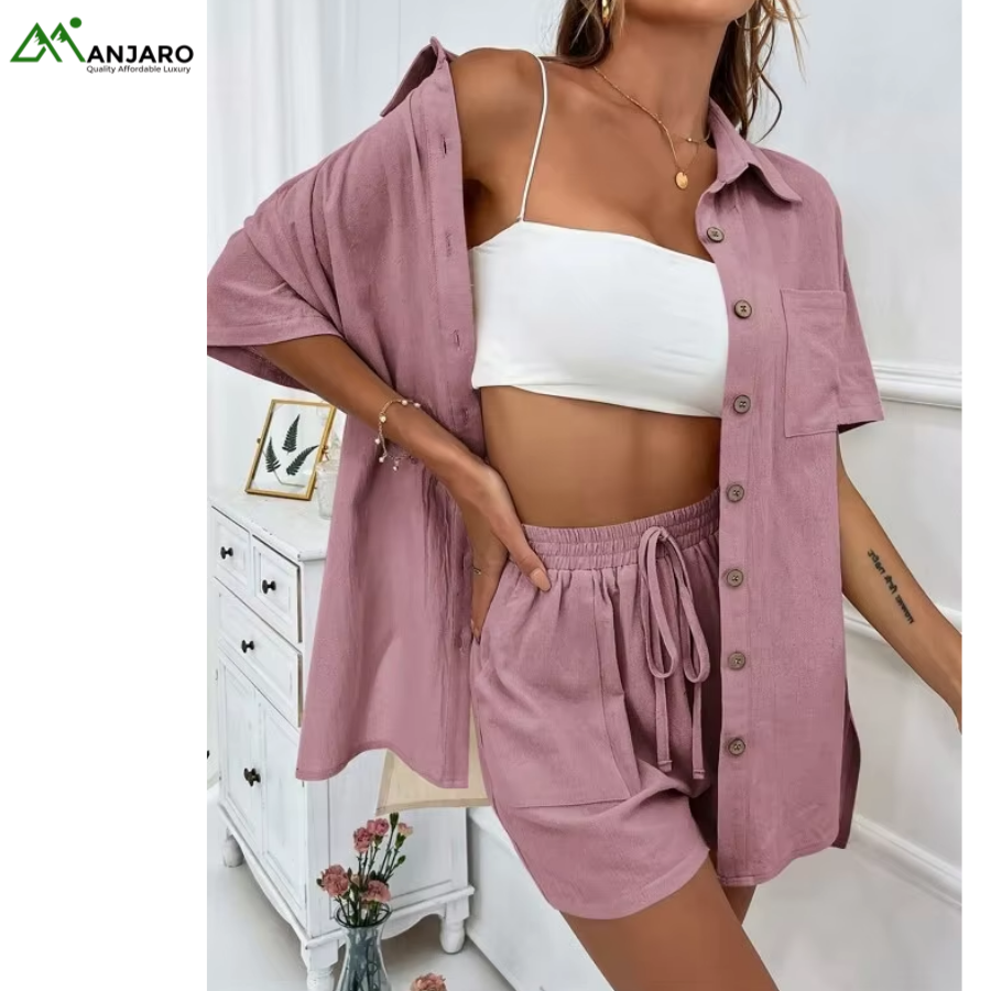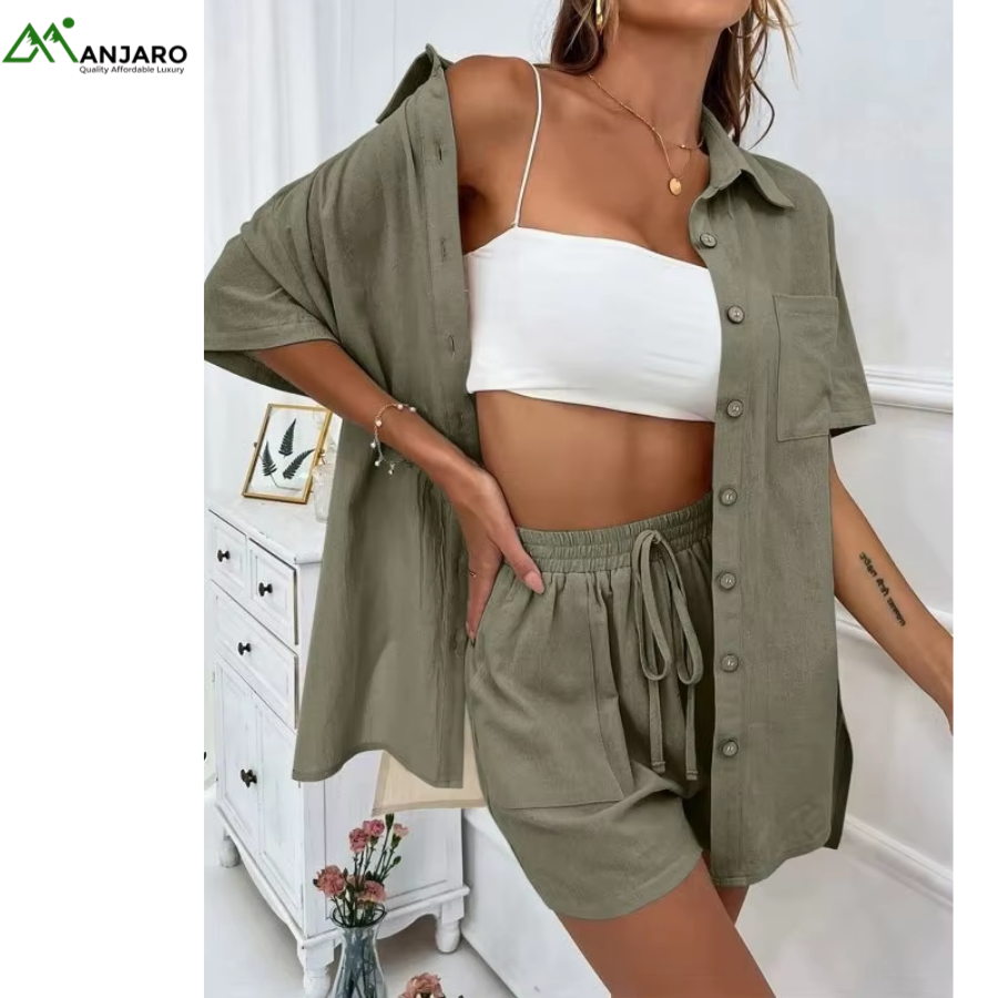 Made from a premium linen-cotton blend, this lightweight set ensures breathability and softness, perfect for hot summer days, casual outings, or holiday trips. The minimalist solid color design and practical pocket details make this outfit both functional and stylish.