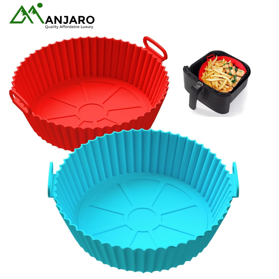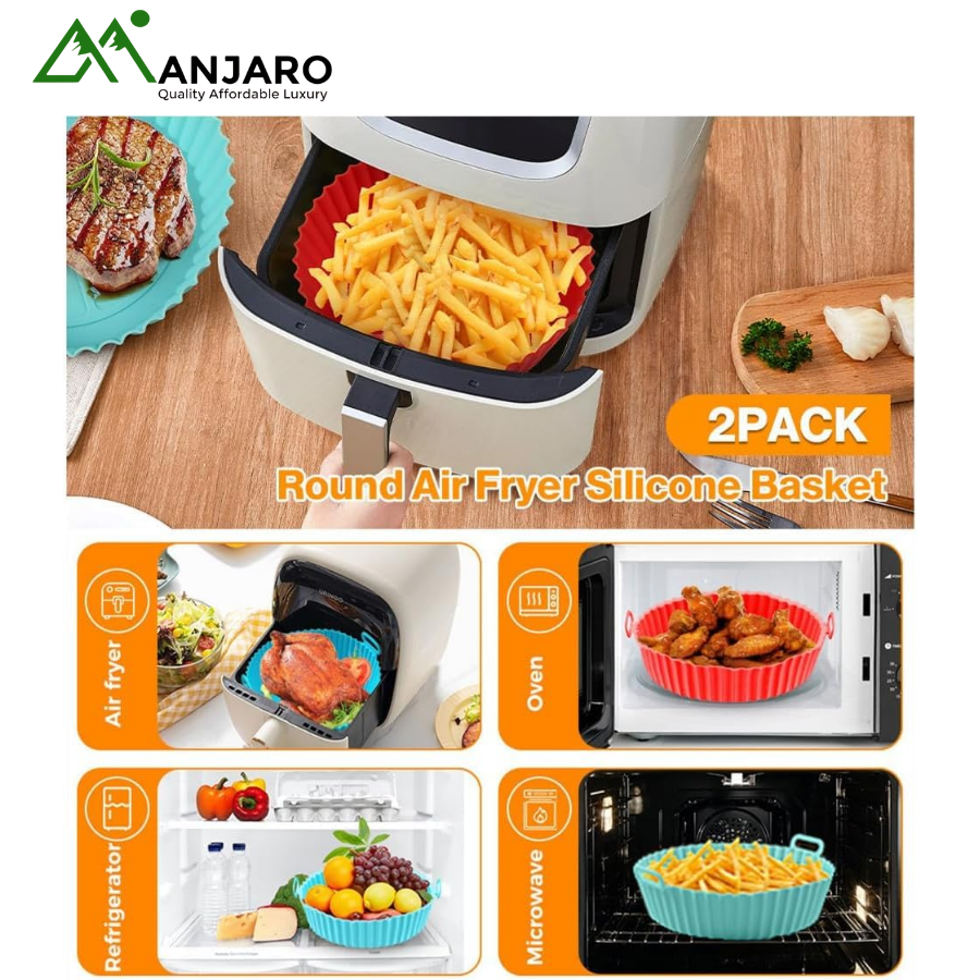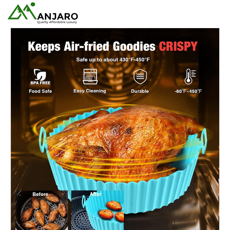 Upgrade your air frying experience with the Reusable Silicone Air Fryer Basket Liners. This product is a dynamic, fresh, and forward-thinking solution designed to simplify cleanup and promote healthier cooking. These round liners fit perfectly inside your air fryer basket, protecting it from grease, food residue, and sticky sauces, virtually eliminating the need for scrubbing.
