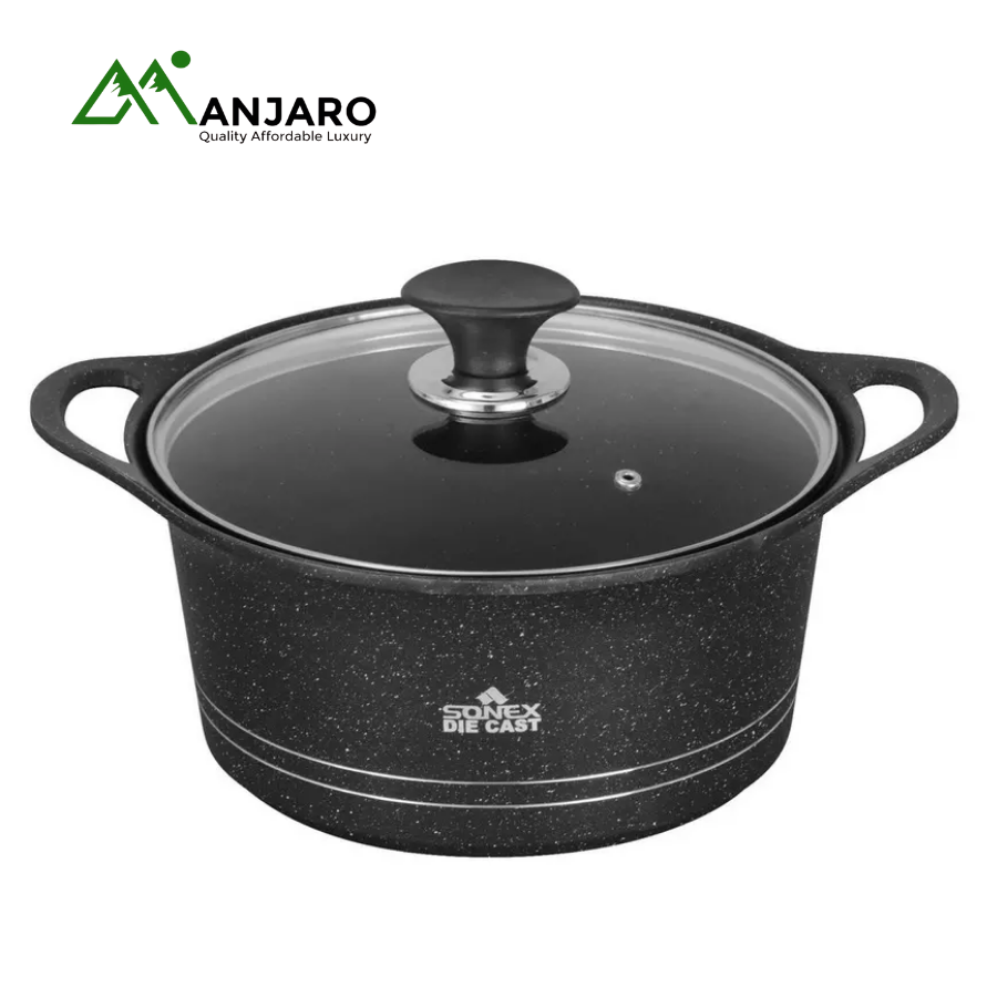 Execute gourmet meals with dynamic, fresh, and forward-thinking style using the SONEX Die-Cast 21-Piece Cookware Set (AROMA PLUS). This extensive collection is a must-have for any modern kitchen, embodying quality affordable luxury. The set features high-quality die-cast construction with a durable marble non-stick coating, ensuring effortless cooking and easy cleanup with minimal oil.