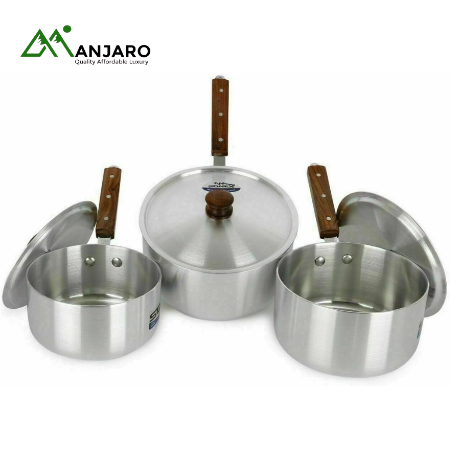 Cook with confidence using the Sonex 3-Piece Metal Finish Cookware Set, designed for everyday durability and heat efficiency. Each saucepan is crafted from premium-grade aluminum, ensuring even heat distribution for perfect cooking results. The wooden handles offer a comfortable, cool grip, while the sleek metallic finish adds a modern touch to your kitchen.