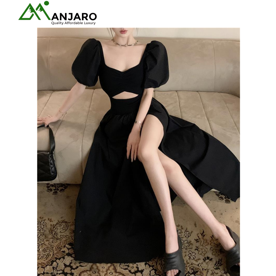 Elevate your wardrobe with timeless Parisian charm in this French-style black dress set — a modern expression of elegance and confidence. Designed with a flattering square neckline and soft puff sleeves, this waist-slimming slit skirt enhances your silhouette while offering everyday comfort. Crafted from premium polyester fiber, it delivers a graceful drape and wrinkle resistance, making it the perfect choice for work, dates, or evening occasions. The mid-length slit adds allure and sophistication, blending classic femininity with contemporary edge.