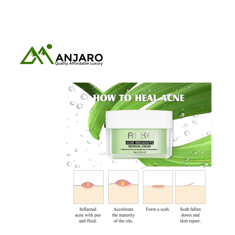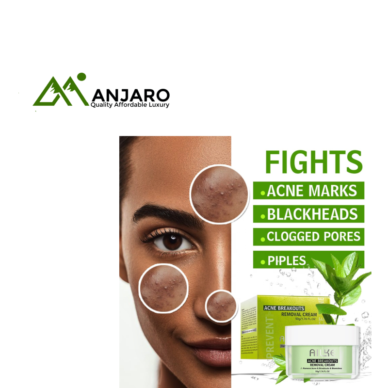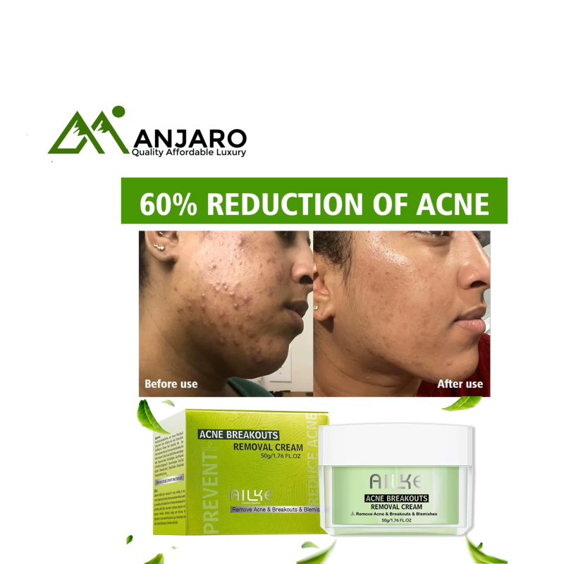 The Ailke Acne Breakouts Removal Cream is a targeted night-time skincare treatment designed to combat pimples, whiteheads, blemishes, and acne scars. Powered by salicylic acid, vitamin C, niacinamide, and hyaluronic acid, this formula penetrates deep into pores to unclog impurities, reduce inflammation, and prevent future breakouts. Enriched with aloe vera, collagen, kojic acid, and nourishing plant extracts, it also works to lighten dark spots, smooth skin texture, and restore a healthy glow. Ideal for normal skin, this cream provides anti-aging, moisturizing, and whitening benefits for a clearer, more radiant complexion.