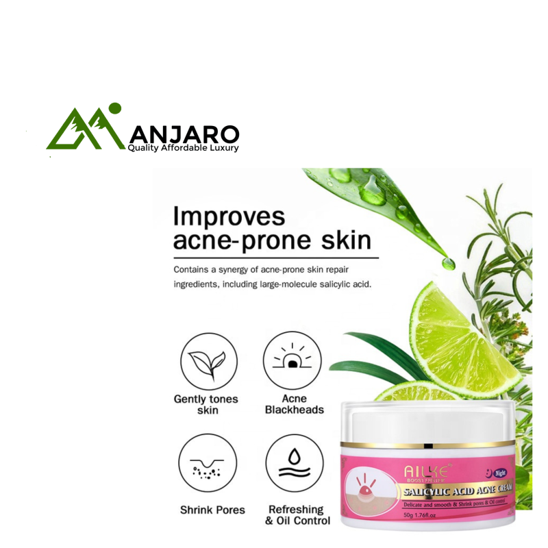 The AILKE Diamond Anti-Acne Face Cream is a powerful night treatment formulated to target pimples, excess oil, and uneven skin tone. Enriched with Salicylic Acid, Vitamin C, Vitamin E, Glycerin, and Vitamin B5, this cream works overnight to reduce acne, minimize pores, and brighten the skin for a smoother, clearer complexion.