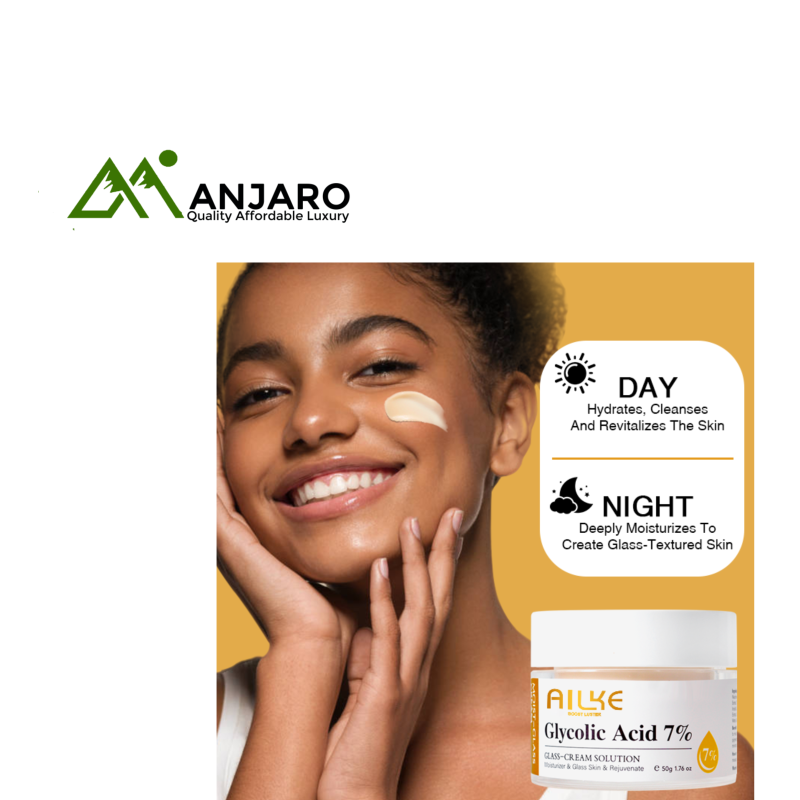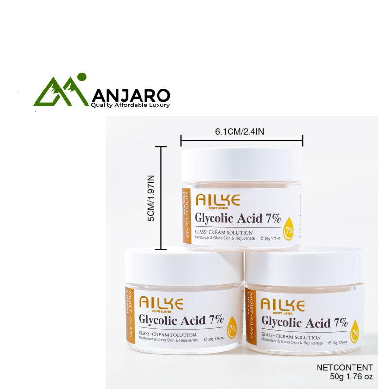 The AILKE Glycolic Acid 7% Cream is a night skincare essential designed to rejuvenate and transform dry skin into radiant, glass-textured skin. Formulated with glycolic acid, vitamin C, and glutathione, this advanced cream works overnight to gently exfoliate, diminish dark spots, reduce fine lines, and deeply hydrate the skin. Its powerful blend of active ingredients supports skin renewal, enhances firmness, and restores brightness, making it ideal for adults seeking smoother, younger-looking skin. Vegan, cruelty-free, and free from parabens, silicones, and sulfates, this cream is safe for daily nighttime use.