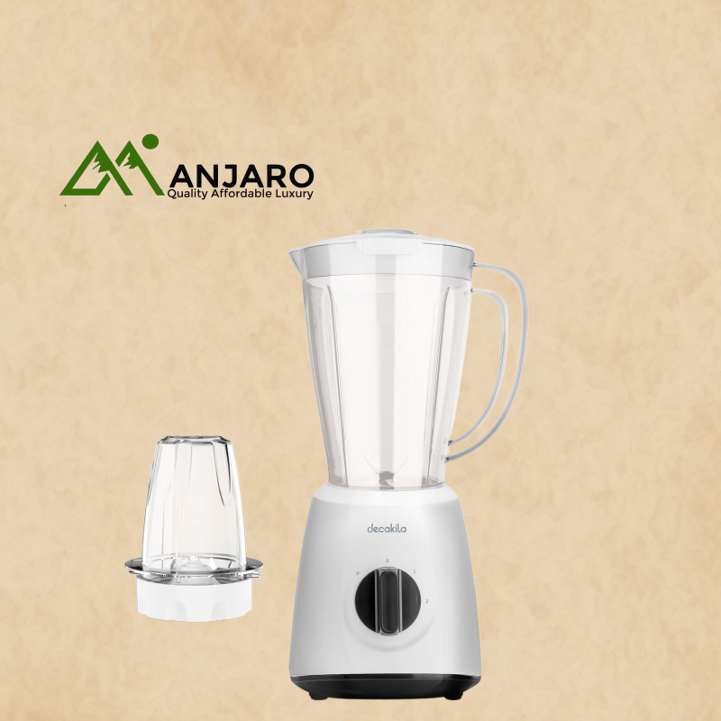 The Decakila KEJB034W Stand Blender is designed for convenience and performance, perfect for making smoothies, sauces, soups, and more. Powered by a 500W motor, this blender efficiently processes ingredients with its sharp stainless steel blades, delivering smooth and consistent results. The 1.5-litre jar provides ample capacity for family servings, while its two-speed control with pulse function offers versatility for different textures and recipes. With a sleek, compact design and easy-to-clean components, this blender is a must-have for every modern kitchen.