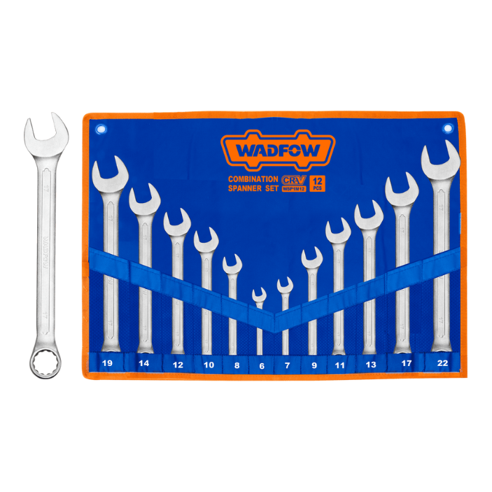 Get the job done right with the Wadfow WSP1M12 12 Pcs Combination Spanner Set—a must-have for every toolbox. Each spanner features an open end for quick turning and a 12-point ring end for a snug, torque-friendly grip. Made from premium chrome vanadium steel, this set is engineered for strength, precision, and corrosion resistance. Ideal for home repairs, automotive maintenance, and workshop use, the WSP1M12 set comes in a compact roll-up pouch for organized storage and easy access.