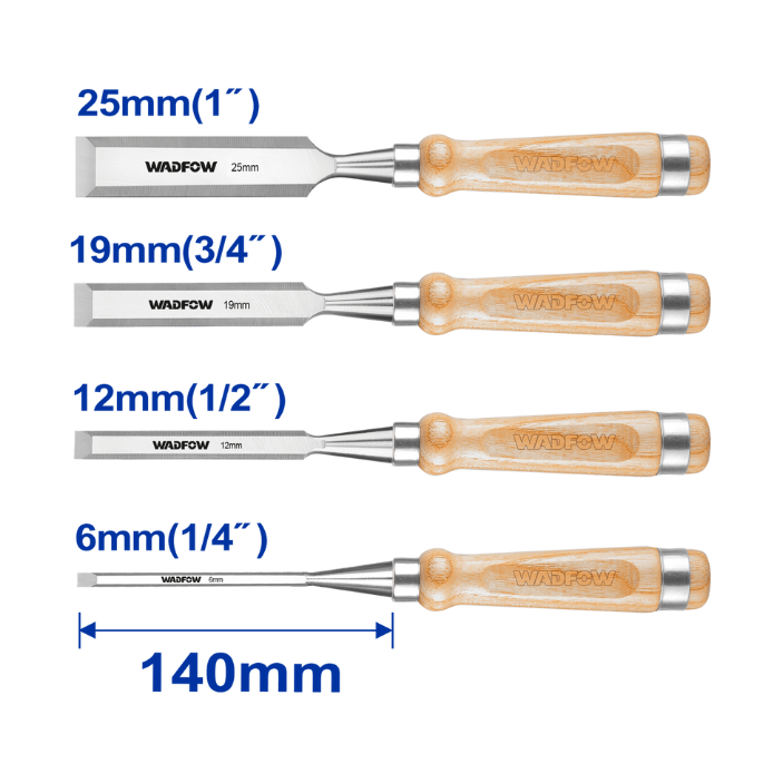 Upgrade your woodworking toolkit with the Wadfow WWC3214 4 Pcs Wood Chisel Set—designed for craftsmen who demand precision and strength. This versatile set includes four chisels of different widths, allowing you to tackle everything from detailed carving to robust trimming. Each chisel features a hardened steel blade for long-lasting edge retention and an ergonomically designed handle for comfort during prolonged use. Perfect for furniture making, joinery, and general carpentry, this set is a reliable companion for both beginners and professionals.