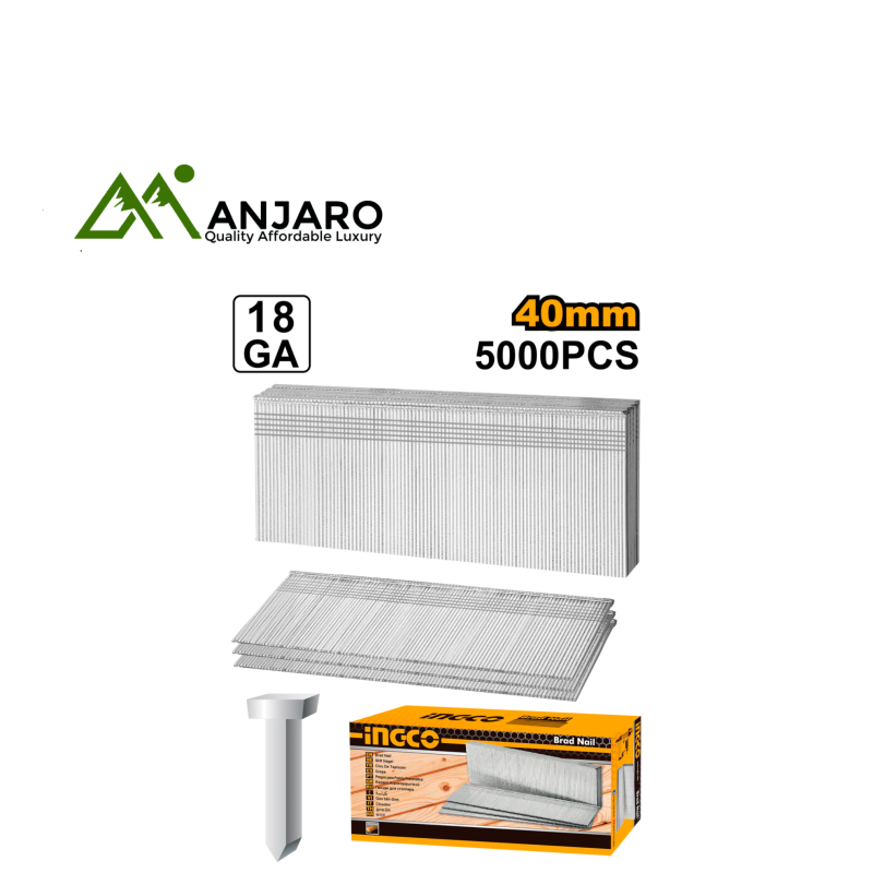 The Ingco ANA18201, ANA18301, and ANA18401 Brad Nails set offers durable, precision-engineered steel finish nails designed for a wide range of woodworking, carpentry, and finishing projects. This set includes 20mm, 30mm, and 40mm brad nails, providing versatility for different fastening depths when using compatible brad nailers. Built to resist bending and jamming, these nails ensure smooth, reliable performance during cabinetry, trims, and furniture assembly, helping you achieve a clean, professional finish on every project.
