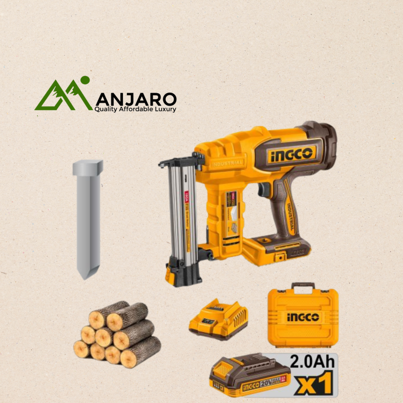 The Ingco CBNLI2038 Cordless Brad Nailer is built for efficient and precise fastening, ideal for carpentry, furniture assembly, and finishing projects. Operating on a 16V system, this brad nailer offers cordless convenience without sacrificing power, allowing freedom of movement across job sites. It supports F15~F35 brad nails with a 105-piece magazine capacity, ensuring continuous workflow with fewer reloads. Included in the package are 1000 pcs of 35mm brad nails, two 16V 2.0Ah batteries, a charger, air nozzle, pin, and a sturdy carrying case for organized transport and storage. Lightweight and ergonomic, this tool is perfect for professionals and DIYers seeking reliable, clean nailing results.