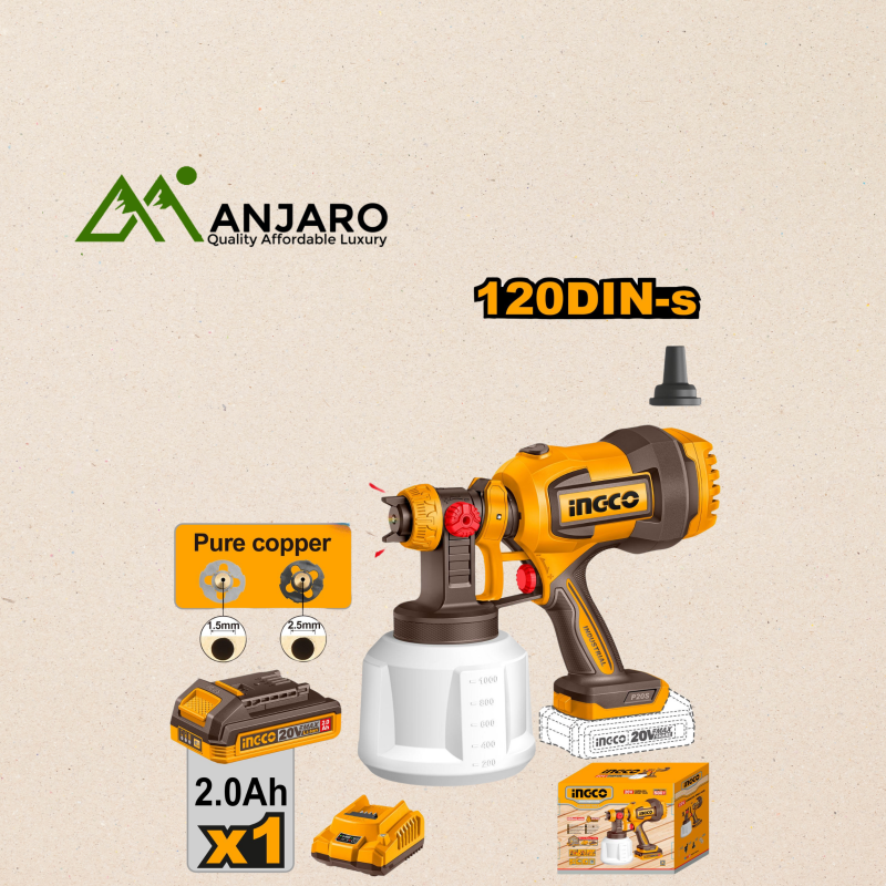 The Ingco CSGLI20042 Cordless Spray Gun is designed to make your painting tasks faster, cleaner, and more precise. Operating on a powerful 20V system, this spray gun delivers a consistent spray pattern for smooth finishes on walls, furniture, and craft projects. It features adjustable spray settings, allowing control over paint flow and pattern for different applications, while the cordless design offers freedom of movement without tangled cables. Whether you are repainting furniture or handling indoor and outdoor painting, this spray gun provides a reliable and efficient painting experience, saving time while achieving professional results.