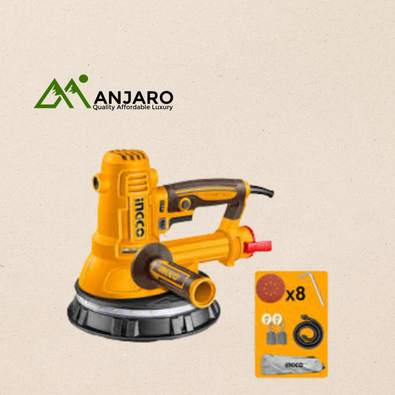The Ingco DWS10508 Drywall Sander is designed for efficient wall and ceiling sanding, combining an 850W motor with a variable speed range of 1000–2900rpm to tackle a variety of finishing tasks with ease. Featuring a 180mm grinding and sanding pad, this sander offers broad surface coverage, while the integrated work light ensures clear visibility during operation. It includes a 2m flexible dust hose and a dust bag for effective dust management, keeping your workspace clean. The ergonomic design, paired with included sandpapers and extra carbon brushes, makes this sander an essential tool for contractors and DIY renovators seeking professional results.