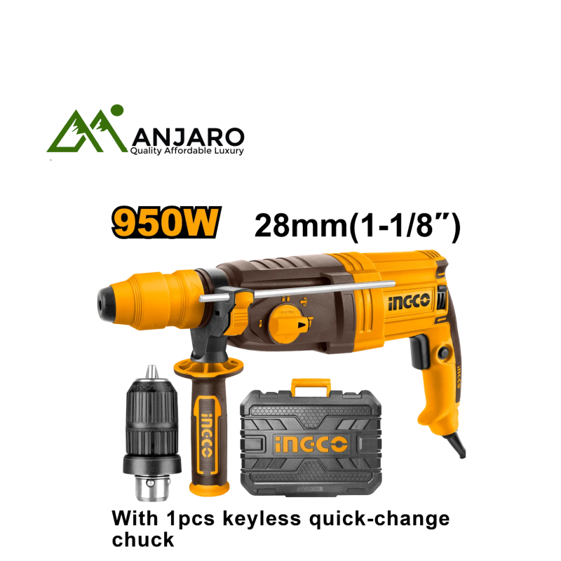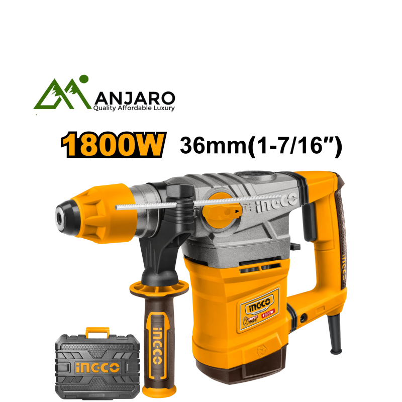 Ingco Rotary Hammers are built for intense drilling and chiseling work in concrete, masonry, and stone. This comprehensive lineup—including models RH17001, RH1700558, RH1500528, RH1600388, RH18008, RH150028, RH10506, and RGH9528-2—offers varying power outputs and impact energies to match every construction or renovation task. With features like SDS+ and SDS-Max chucks, ergonomic anti-vibration handles, and durable copper wire motors, these tools deliver both high performance and operator comfort. Ideal for professional contractors and serious DIYers who demand reliability and power in rotary hammer drilling.