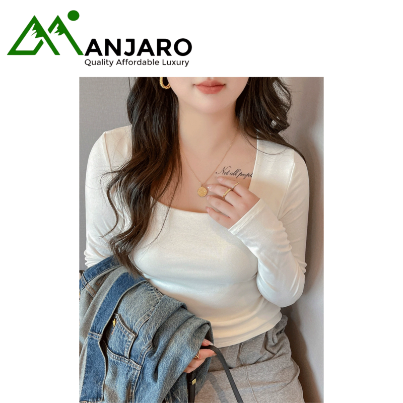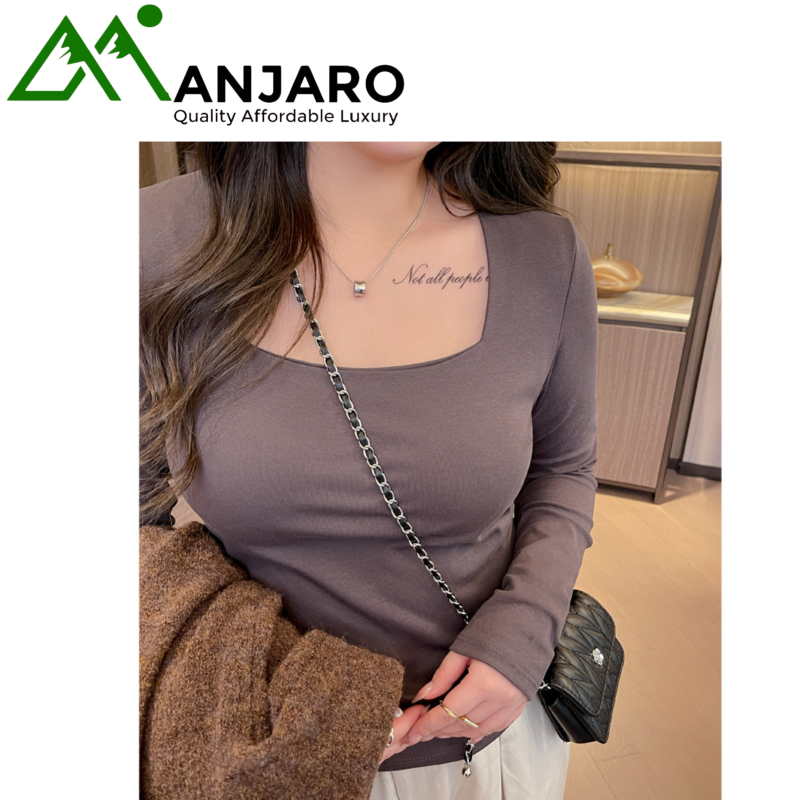 Step into timeless elegance with this large-size square neck long sleeve top designed to flatter every silhouette. Crafted from premium cotton with added spandex, it combines comfort, flexibility, and refined simplicity. Its soft texture, breathable weave, and slimming cut make it perfect for layering or wearing alone as an outer top. Ideal for spring and autumn, this stylish commuter-inspired T-shirt elevates your everyday look with ease and confidence.