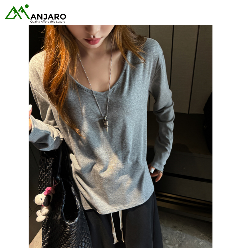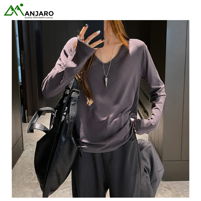 Designed in a loose, mid-length cut, it drapes beautifully on the body, providing a flattering silhouette without clinging. The V-neckline enhances the neckline subtly, adding a feminine edge to its relaxed, minimalist vibe. Its long sleeves and smooth stitching make it perfect for layering under jackets or pairing with jeans, skirts, or trousers for everyday wear.