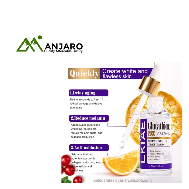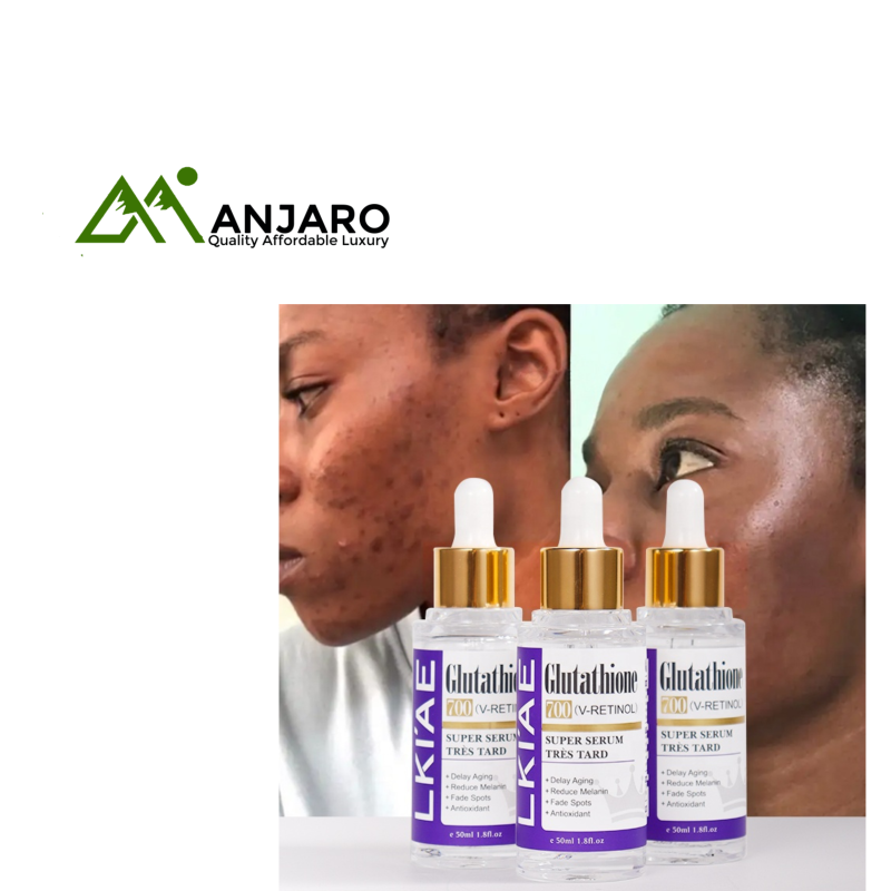 The LKIAE Glutathione V-Retinol Serum is an advanced skincare formula designed to reduce melanin, fade dark spots, and rejuvenate skin. Enriched with Glutathione, Retinol, Hyaluronic Acid, Vitamin E, Niacinamide, Collagen, and Arbutin, this potent serum helps restore youthful radiance while minimizing wrinkles and fine lines.