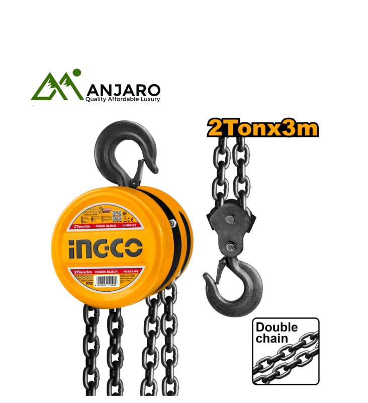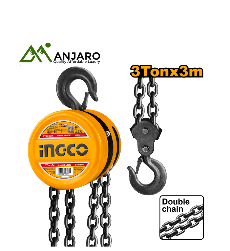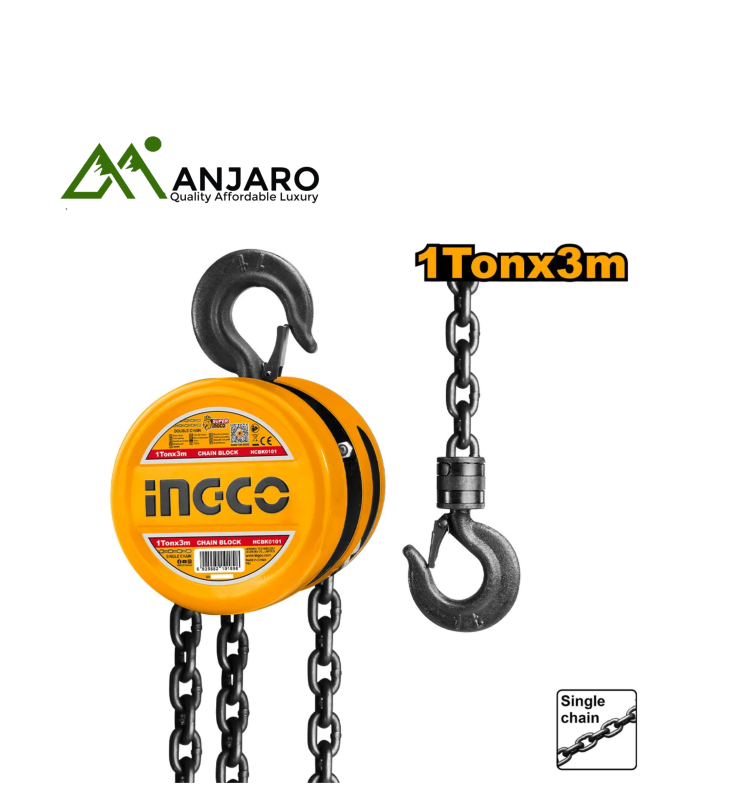 The Ingco Chain Block series (models HCBK0105, HCBK0103, HCBK0102, HCBK0101) delivers powerful lifting performance for heavy loads in workshops, warehouses, and construction sites. Designed with high-strength steel gears and a rugged mechanical build, these manual chain hoists provide reliable operation and smooth load control. Each model in the series supports different lifting capacities, making them suitable for a wide range of industrial and mechanical lifting tasks. Safety latches, a compact design, and anti-corrosion finishing ensure long-term use even in tough environments.