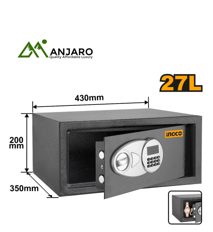 The Ingco ESF5002, ESF3502, and ESF2502 Electronic Safes offer reliable, high-security storage for your cash, documents, and valuables. Designed with heavy-duty steel construction and a digital keypad lock, these safes are ideal for home, office, and retail environments. Each safe features a programmable code system, emergency override key access, and pre-drilled mounting holes for easy installation. Available in multiple sizes, they are built to suit a variety of storage needs while providing peace of mind. Keep your essentials safe with advanced security and convenient digital access.