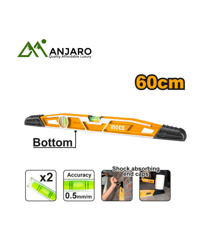 Ensure flawless alignment in every build with the Ingco HBSL08060 Heavy-duty Mason's Level — a rugged, professional-grade tool designed for precision and durability. Built from high-quality aluminum, this spirit level delivers accurate horizontal and vertical readings for construction, tiling, framing, and masonry projects. The shock-absorbing end caps and easy-to-read vials make it ideal for job sites where performance and resilience matter. Whether you're laying bricks or installing fixtures, this level helps you achieve perfect balance every time.