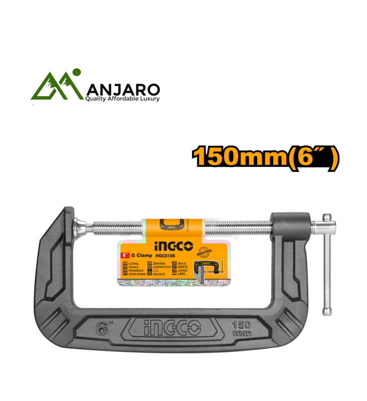 The Ingco HGC series G Clamps — including models HGC0108, HGC0106, and HGC0104 — are essential tools for precision clamping in woodworking, welding, metalwork, and general repairs. Designed with a strong malleable cast iron frame and a durable threaded screw, each clamp delivers consistent pressure for firm holds. These heavy-duty clamps come in multiple sizes (4", 6", and 8") to suit a range of tasks, from delicate crafting to industrial-level gripping. Whether you're a DIY enthusiast or a professional tradesperson, the Ingco G Clamps provide stability and confidence on every job.
