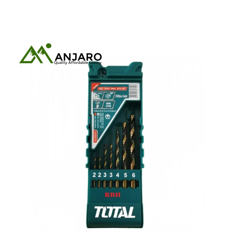 Drill with confidence using the Total TACSD0075 7 Pcs HSS Twist Drill Bits Set. This compact and durable set includes seven high-speed steel bits, perfect for precision drilling in wood, plastic, and metal. Designed for efficiency and long-lasting performance, these bits are ideal for both professional tradespeople and DIY users.