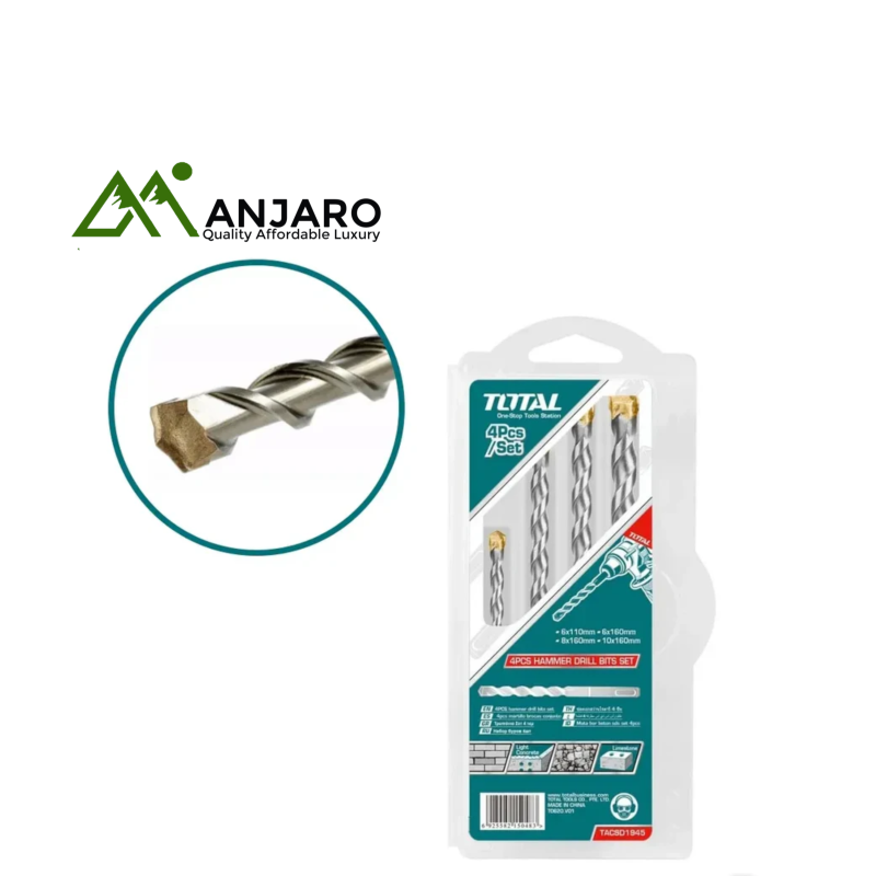 Tackle tough masonry and concrete drilling with ease using the Total TACSD1945 4 Pcs Hammer Drill Bits Set. Engineered for power and precision, these SDS Plus bits feature a high-strength alloy body and tungsten carbide tips for extended durability and cleaner holes. Perfect for professionals and DIYers working on walls, floors, and heavy-duty installations.