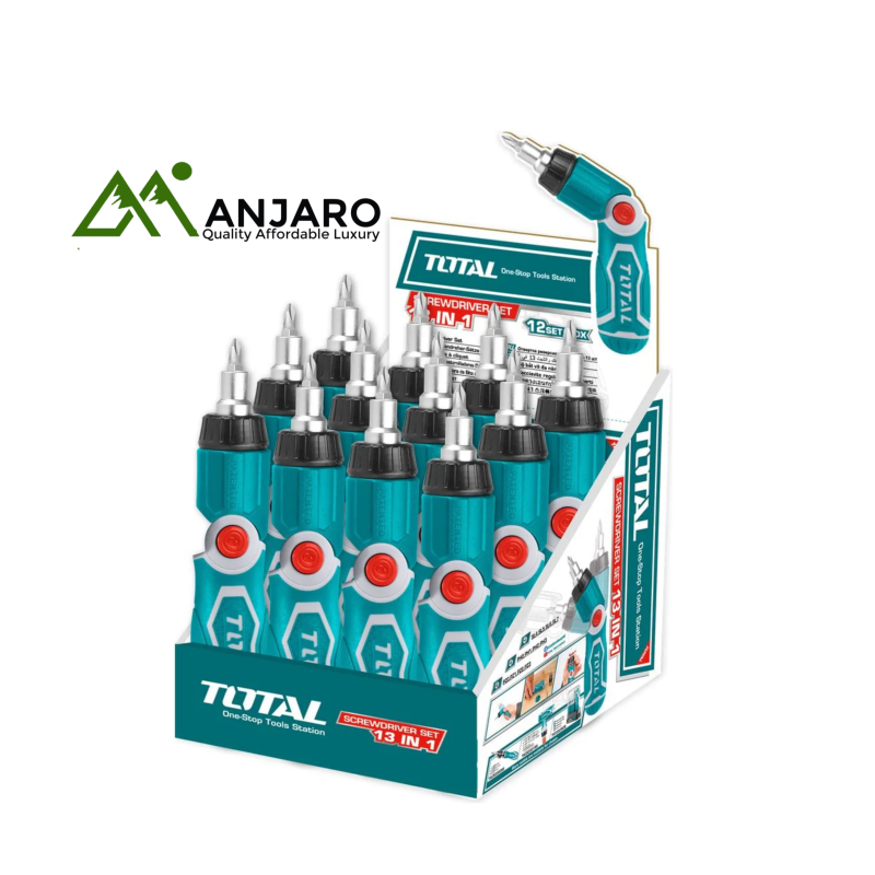 Make every twist count with the Total TACSD30136 13 In 1 Ratchet Screwdriver Set, designed for fast, effortless screwdriving in tight or repetitive tasks. Featuring a smooth 3-way ratcheting mechanism and 12 interchangeable magnetic bits, this set offers versatility and control for various repairs. Whether you're working on electronics, assembling furniture, or handling everyday maintenance, this handy tool is a must-have for any DIY enthusiast or professional.