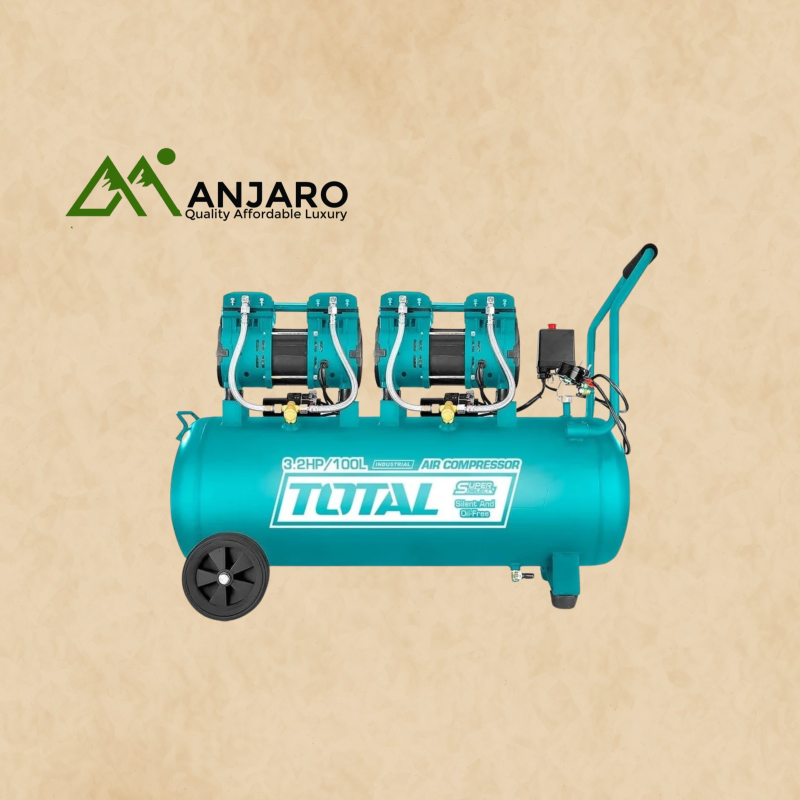 The Total TCS2241008 Air Compressor is a heavy-duty, high-capacity solution designed for intensive industrial, automotive, and workshop applications. With a 3.0HP motor and a generous 100L air tank, this oil-lubricated compressor ensures a reliable, continuous supply of pressurized air for demanding pneumatic tools. Built for performance, it features an 8-bar max pressure, dual-cylinder pump, and thermal overload protection. The unit is equipped with solid wheels and a reinforced frame for easy mobility and long-lasting use in tough environments.