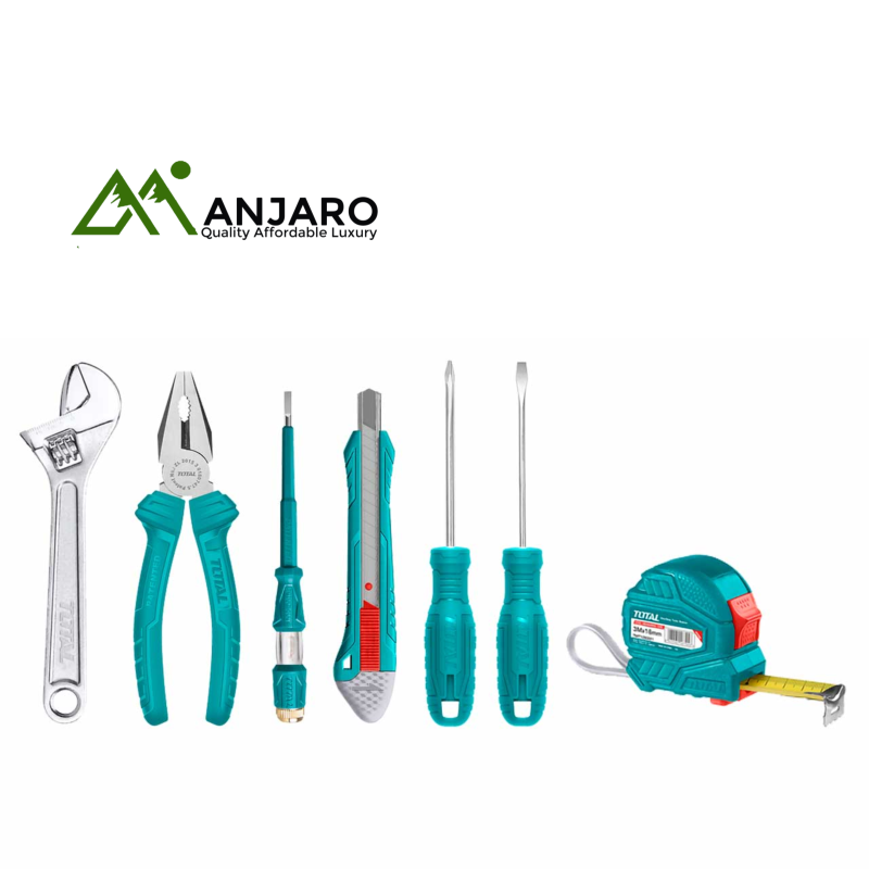The Total THKTHP90076 7 Pcs Hand Tools Set is your everyday solution for quick repairs, small maintenance tasks, and general home DIY work. This compact kit includes essential tools—like pliers, screwdrivers, an adjustable wrench, tape measure, utility knife, and insulation tape—all neatly packed in a durable plastic case. Whether you're assembling furniture, tightening screws, or handling minor electrical tasks, this toolkit is a reliable companion for hassle-free maintenance and handy jobs.