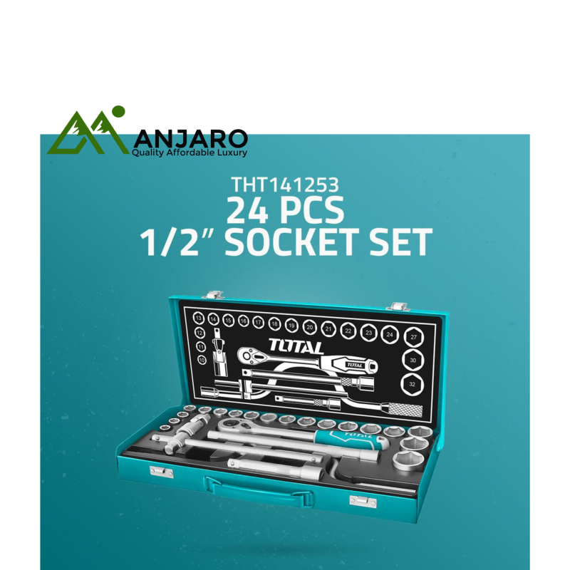 Get the precision and durability you need with the Total THT141253 24 Pcs 1/2" Socket Set—a must-have for mechanics, technicians, and DIY enthusiasts. This high-performance set includes 24 premium-grade sockets, a quick-release ratchet handle, and essential accessories, all made from chrome vanadium steel for superior strength and longevity. Packaged in a sturdy, compact case, this set is ideal for tightening and loosening bolts on vehicles, machines, and home projects.