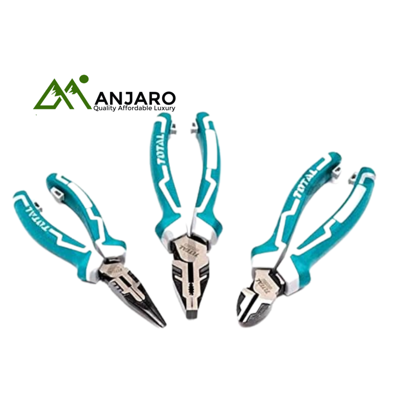 The Total THT2K0301S 3 Pcs High Leverage Pliers Set is a must-have for professionals and DIY enthusiasts who need versatility, power, and comfort in one package. This set includes three essential pliers—combination, diagonal cutting, and long nose—all engineered with high-leverage design for superior grip and cutting strength. Made from drop-forged carbon steel and fitted with ergonomic anti-slip handles, these tools are ideal for electrical, mechanical, and general repair tasks. Durable, reliable, and built for heavy use, this set enhances your productivity on every job.