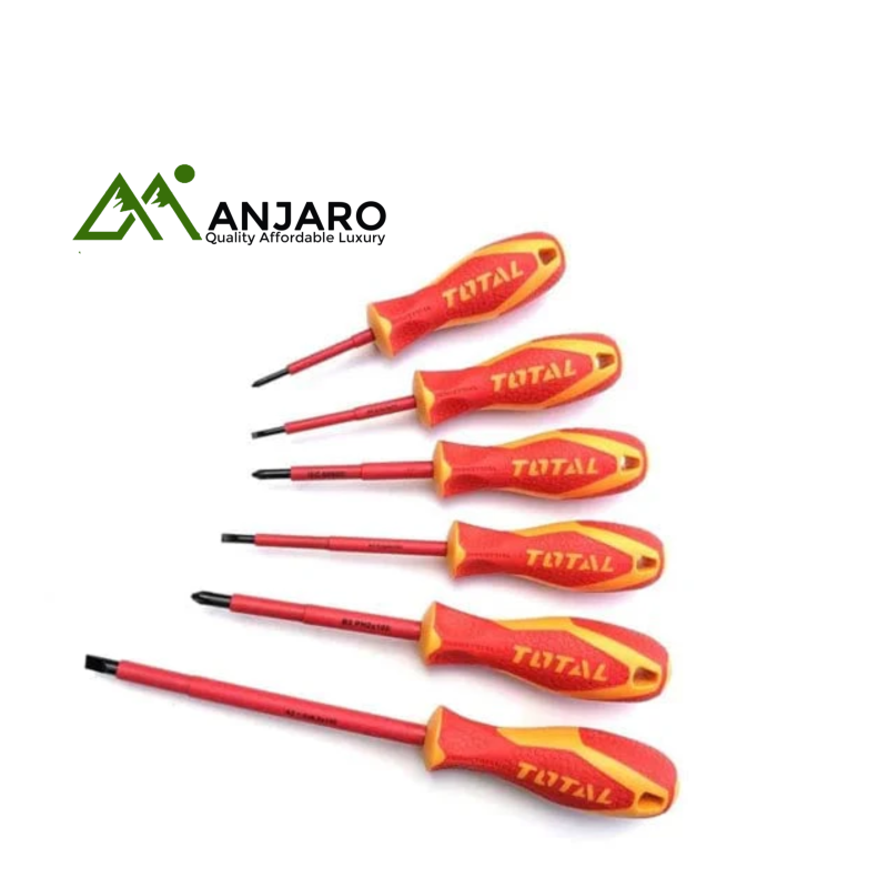 Work safely and efficiently with the Total THTIS566 6 Pcs Insulated Screwdriver Set, engineered for precision and protection in electrical applications. Each screwdriver is VDE-certified and insulated up to 1000V, making them ideal for electricians, technicians, and DIYers working with wiring or electrical components. With durable chrome vanadium steel tips and comfortable anti-slip grips, this set combines safety and performance in one essential toolkit.