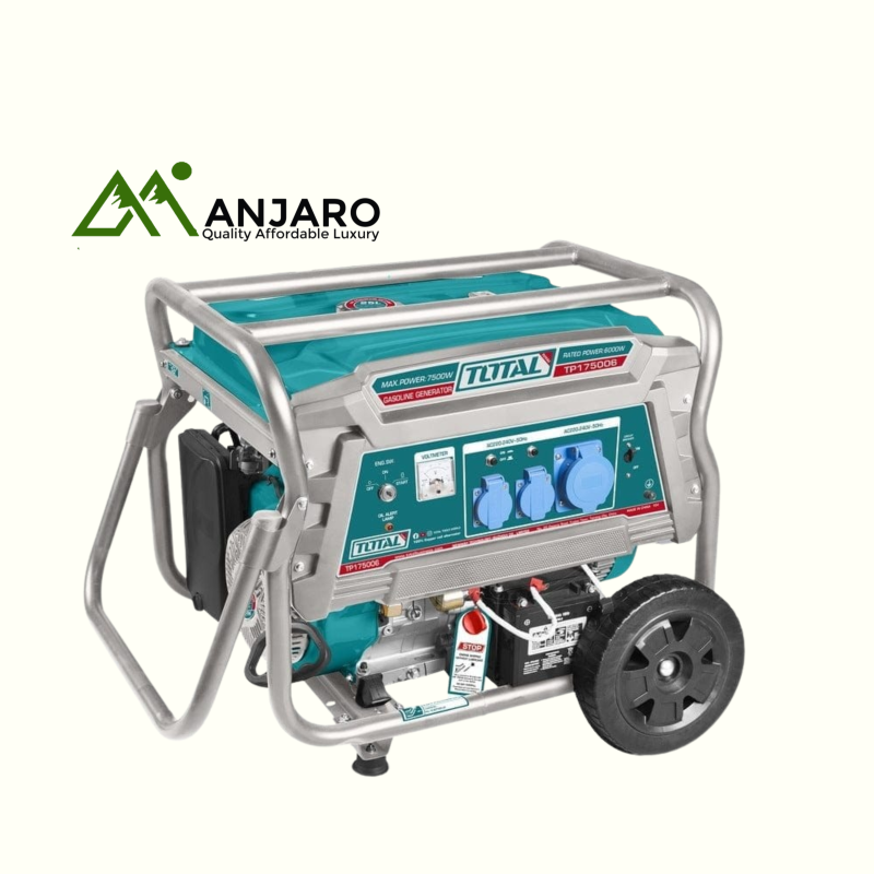 The Total TP175006 Gasoline Generator delivers7.5kW of stable and efficient power, making it a dependable energy source for homes, job sites, and outdoor activities. Engineered with a high-performance gasoline engine, it features a pull-start system, a fuel-efficient tank, and a durable frame designed for heavy-duty use. Its compact, wheeled design allows for easy transportation, while the control panel ensures user-friendly operation and safety. Whether you're dealing with power outages or working remotely, the TP175006 keeps your essential equipment running smoothly.