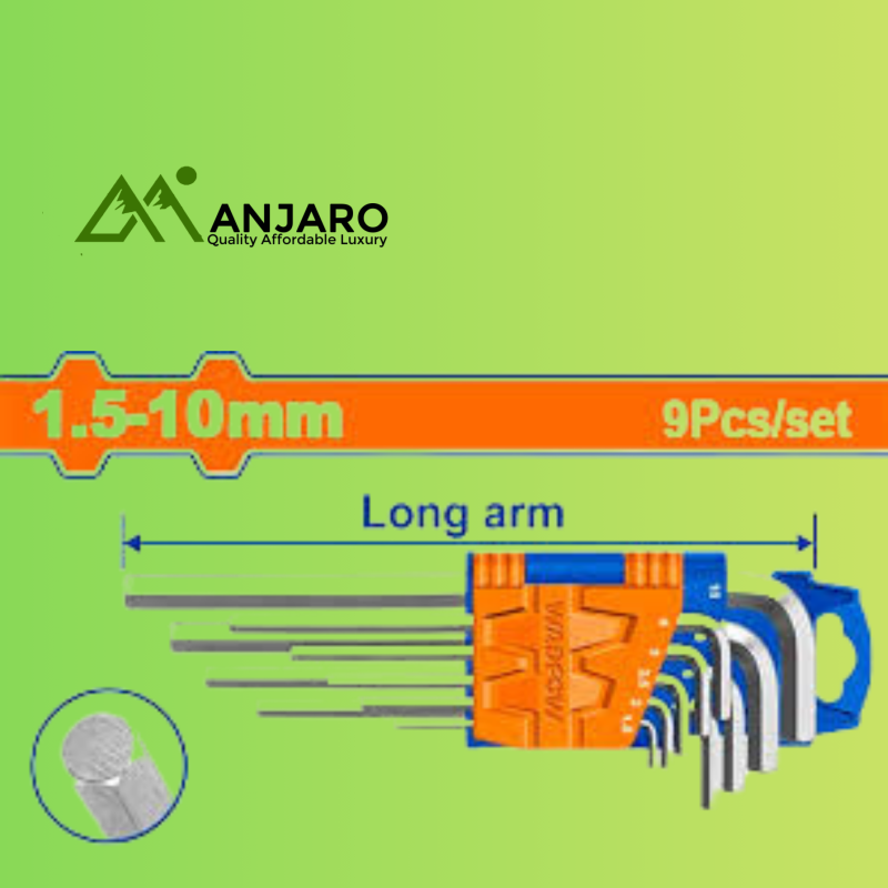 The Wadfow WHK1291 Hex Key Set is a durable and versatile 9-piece tool kit designed for mechanics, technicians, and DIY users. Made from high-quality chrome vanadium (Cr-V) steel, each hex key is heat-treated and chrome-plated for enhanced strength, corrosion resistance, and long-term performance. With long-arm design for extra torque and reach, this set covers essential sizes from 1.5mm to 10mm, making it suitable for assembling furniture, repairing bicycles, machinery, and other fastening tasks. Packed in a convenient sliding card, it ensures easy storage and organization for both professionals and hobbyists.