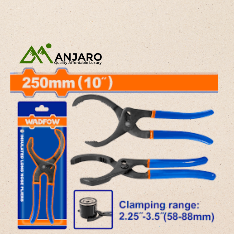 The Wadfow WPL6610 Oil Filter Pliers are built for secure, slip-free removal and installation of oil filters within the 2.25" to 3.5" (58–88mm) range. Crafted from durable carbon steel with a corrosion-resistant black finish, these pliers provide long-lasting performance in automotive repair environments. The ergonomic plastic handle offers comfort and control, while the adjustable jaw design ensures compatibility with a wide range of filter sizes. Perfect for mechanics, workshops, and home garage maintenance.