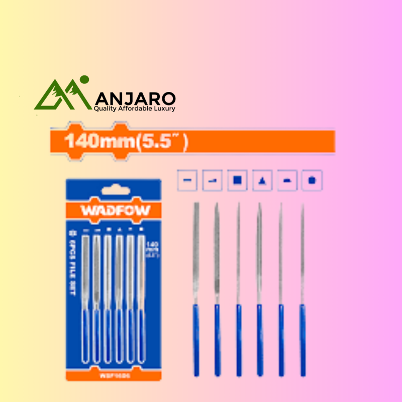 The Wadfow WSF1606 6 Pcs File Set is designed for precision shaping, smoothing, and finishing tasks across wood, metal, and plastic materials. Each file is crafted from durable steel for long-lasting use and comes in various shapes—including flat, round, half-round, square, triangle, and knife—to meet diverse application needs. With 140mm length and 3mm diameter, these files are compact yet effective, perfect for detailed work in workshops, construction, and DIY projects. The plastic-coated handles provide a comfortable, non-slip grip for greater control. Packed by sliding card, this set is convenient for storage and easy to carry.