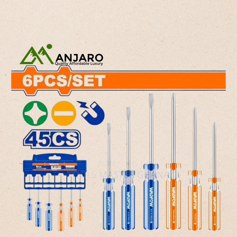 The Wadfow WSS3206 6 Pcs Screwdriver Set is built for precision, durability, and everyday versatility. Made from high-quality 45# carbon steel, these screwdrivers feature round shanks for strength and control, making them ideal for mechanical work, electronics repair, and household tasks. The set includes both flathead and Phillips tips in various sizes, ensuring you always have the right driver for the job. Conveniently packed on a plastic hanger, they are easy to store and keep organized.