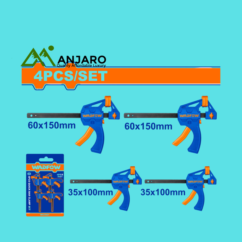 The WCZ4E21 4Pcs Quick Bar Clamp Set is designed for craftsmen, builders, and DIY enthusiasts who value efficiency and precision. This set includes two 4" (35x100mm) and two 6" (60x150mm) clamps, giving you the flexibility to tackle a wide range of clamping and holding tasks with ease.